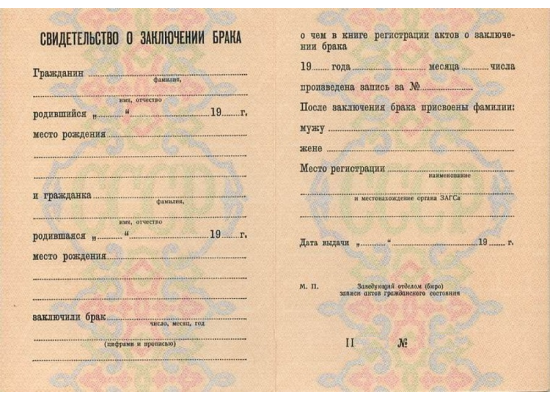 Купить свидетельство о заключении брака 1993 -1997 гг.